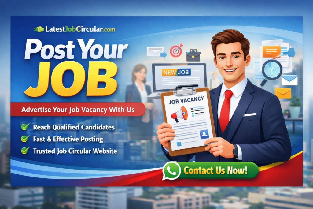 LatestJobCircular.com আপনাকে দিচ্ছে একটি নির্ভরযোগ্য ও কার্যকর প্ল্যাটফর্ম, যেখানে আপনি খুব সহজেই আপনার Job Circular পোস্ট করতে পারবেন এবং অল্প সময়ের মধ্যেই পৌঁছে যেতে পারবেন হাজারো চাকরিপ্রার্থীর কাছে।